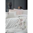 Dantela Salkım Nakışlı Pamuk Saten Nevresim Takımı Ekru