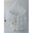 Dantelli Bebek Battaniyesi %100 Pamuklu Doğal Organik Uyku Kundağı Hediyelik Yenidoğan Mevlütlük Knd45516 Ekru