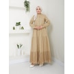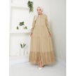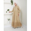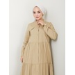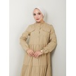 Dantelli Doğal Kumaşlı Boydan Düğmeli Kot Elbise Haki