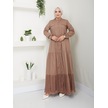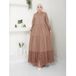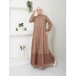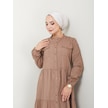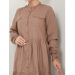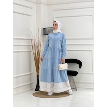 Dantelli Doğal Kumaşlı Boydan Düğmeli Kot Elbise Vizon