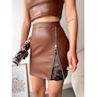 Dantelli Fermuarlı Deri Etek Kahve W24598 Kahve