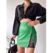 Dantelli Fermuarlı Deri Etek Yeşil W24598 Yeşil