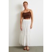Kadın Seaside Vizon Astarlı Bel Lastikli Cepli Dokuma Uzun Etek Vizon
