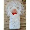 Dantelli Özel Taçlı Bebek Kundağı Unisex Bebek Dış Kundak Battaniyesi Hastane Çıkışı Hediyelik Knd45273 Ekru