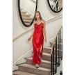 Dantelli Uzun Yırtmaçlı Saten Gecelik Elbise String Takım Kırmızı Mgp31512 Kırmızı