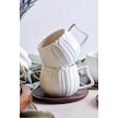 Dark Balkabağı 6'lı Akasya Tabaklı Modern Porselen Kahve Fincanı Seti Beyaz Beyaz