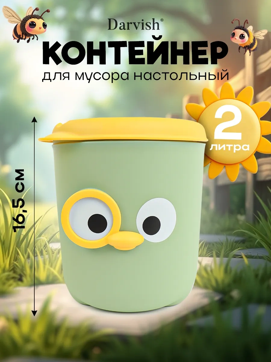 Darvish Tm Masaüstü Çocuk Çöp Kutusu Kapaklı Çöp Konteyneri 314302133 Yeşil