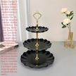 Dashanshop Ruffle Siyah Tek Parça 3 Katlı Porselen Kek Standı Kaymaz Tabanlı Dantel Desenli