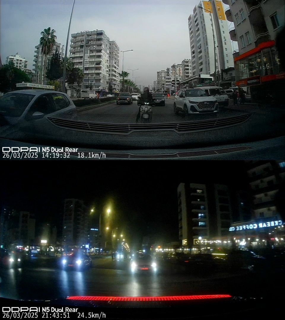 Tek kelimeyle harika ön kamera 4k çekimi.Arka kamera 1080.1 dk da g0ndüz 200 mbayt...32gb ile 2saat üzeri kayıt.Cama yapıştırılması hoşuma gitmedi.Cam kırılsa veya deforme olsa yedek yapıştırılacak parçası yok...Ani çarpmalar için uyarıcı kayıt şekli yok.Syrıca radar isimli cihaz almalısınız