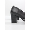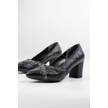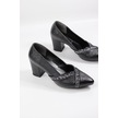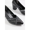 De Scarıo 642 Kadın Simli Detaylı Sivri Burun Kalın Topuklu Ayakkabı Siyah