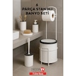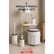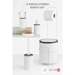 Decorev 6 Parça Standlı Banyo Seti 7 Litre Çöp Kovası, Tuvalet Kağıtlığı, Sabunluk, Fırçalık Banyo Takımı Beyaz - Gri
