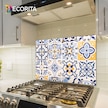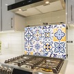 Decorita Mavi Çini Desen Cam Ocak Arkası Koruyucu | 49,5cm x76cm