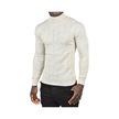 Deepsea Erkek Bej Slim Fit Likralı Tam Balıkçı Yaka Çizgili Boğazlı Kazak 2505504 Bej