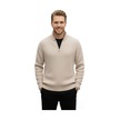 Deepsea Erkek Bej Yarım Fermuarlı Oversize Kesim Triko Kazak %100 Pamuk, Yumuşak Dokulu Örgü Kazak 2608511 Bej