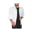 Deepsea Erkek Beyaz Büyük Beden Pamuklu Likralı Spor Gömlek Dar Kalıp, Çıt Çıt Kapamalı 2500423 Beyaz