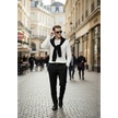 Deepsea Erkek Beyaz Rahat Kalıp Çizgi Dokulu Triko Kazak Şık & Modern Tasarım 2605432 Beyaz