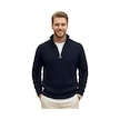 Deepsea Erkek Lacivert Yarım Fermuarlı Oversize Kesim Triko Kazak %100 Pamuk, Yumuşak Dokulu Örgü Kazak 2608511 Lacivert