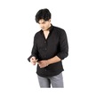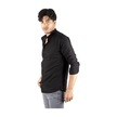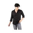 Deepsea Erkek Siyah Hakim Yaka Flamlı Keten Gömlek Siyah