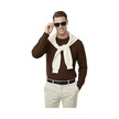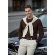 Deepsea Kahve Dar Kesim Likralı Erkek Triko Kazak Bisiklet Yaka Şık Tasarım 2605433 Kahve