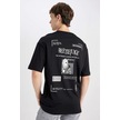 DeFacto %100 Pamuk Beetlejuice (1988) Siyah Boxy Fit Bisiklet Yaka Sırt Baskılı Kısa Kollu Tişört D8514AX24AUBK81