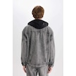 DeFacto %100 Pamuk Oversize Geniş Kalıp Kapüşonlu Düğmeli Mevsimlik Baharlık Jean Ceket D0416AX25SPNM55