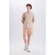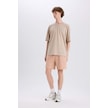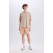 Defacto %100 Pamuk Slim Fit Dar Kesim Dar Paça Cepli Basic Düz Şort B8673ax25smbg790 Bej