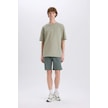 Defacto %100 Pamuk Slim Fit Dar Kesim Dar Paça Cepli Basic Düz Şort B8673ax25smgn463 Yeşil