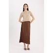 DeFacto A Kesim Yüksek Bel Saten Midi Etek E3348AX24WNBN333 Kahve