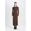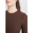 Defacto Bodycon Vücudu Saran Bisiklet Yaka Basic Düz Kaşkorse Uzun Kollu Maxi Elbise D3373AX24WNBN322 Kahve