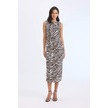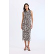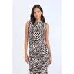 DeFacto Bodycon Vücudu Saran Yarım Balıkçı Yaka Zebra Desenli Tül Kolsuz Midi Elbise E2903AX25SPBN527