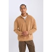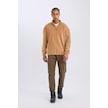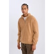 DeFacto Comfort Regular Fit Rahat Kalıp Dik Yaka Baskılı Polar Sweatshirt C7793AX24AUBN124 Kahve Kahverengi