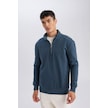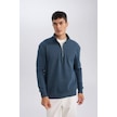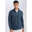 DeFacto Comfort Regular Fit Rahat Kalıp Fermuarlı Dik Yaka Basic Düz Sweatshirt X7405AZ24AUBE700