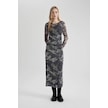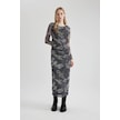 DeFacto Coool Bodycon Desenli Tül Uzun Kollu Maxi Elbise C1891AX24SPGR452