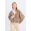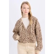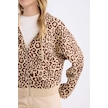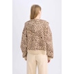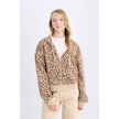 Defacto Coool Loose Fit Leopar Desenli Kapüşonlu Fermuarlı Sweatshirt E0780AX24WNBG389 Bej