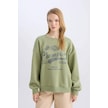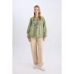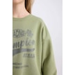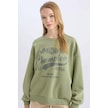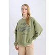 Defacto Coool Oversize Geniş Kalıp Bisiklet Yaka Baskılı Kalın Sweatshirt D5384AX24AUKH461 Haki