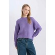 DeFacto Coool Oversize Geniş Kalıp Bisiklet Yaka Triko Kazak V1811AZNSPR262 Mor