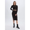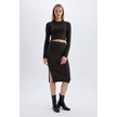 Defacto Coool Slim Fit Dar Kesim Basic Düz Yırtmaçlı Triko Midi Etek A2058AX24AUAR227 Antrasit