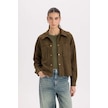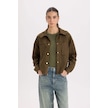 DeFacto Crop Çıtçıtlı Cepli Süet Gömlek Ceket B2983AX24WNKH447 Haki