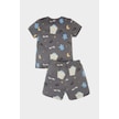 DeFacto Erkek Bebek Pijama Takımı Desenli Kısa Kollu Penye Üst Beli Lastikli Şort E1180A525HSGR310 Gri