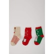 DeFacto Erkek Bebek Yılbaşı Temalı Kaydırmaz Taban 3'lü Pamuklu Uzun Çorap B6307A5NSKR1