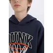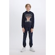 DeFacto Erkek Çocuk 2'li Takım Kapüşonlu Baskılı Sweatshirt Beli Paçası Lastikli Eşofman Altı B0410A824CWAR225