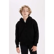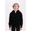 DeFacto Erkek Çocuk Basic Düz Triko İçi Polarlı Kapüşonlu Fermuarlı Siyah Okul Hırkası U4282A624AUBK81