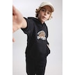 DeFacto Erkek Çocuk Baskılı Kanguru Cepli Kapüşonlu Sweatshirt B7821A8NSBK81 Siyah