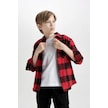 DeFacto Erkek Çocuk Oversize Geniş Kalıp Polo Yaka Pamuklu Uzun Kollu Kareli Gömlek D9721A824WNRD350