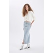 Defacto Fashion Fit Yırtmaçlı Uzun Boy Jean Etek D4419AX24AUNM39 Mavi