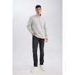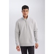 DeFacto Gri 3 İplik Pamuklu Şardonlu İçi Polarlı Comfort Regular Fit Rahat Kalıp Dik Yaka Fermuarlı Kalın Sweatshirt D9067AXNSGR253