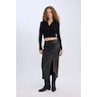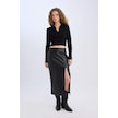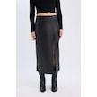 DeFacto Kalem Yüksek Bel Yırtmaçlı Suni Deri Midi Siyah Etek D3015AX24WNBK27 Siyah