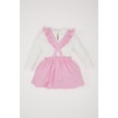 DeFacto Kız Bebek 2'li Takım Bisiklet Yaka Uzun Kollu Üst Askılı Salopet Elbise D9326A525SPPN444 Pembe