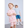 DeFacto Kız Bebek 2'li Takım Desenli Fitilli Kaşkorse Kısa Kollu Tişört Şort E0724A525SMPN127