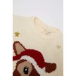 DeFacto Kız Bebek Bisiklet Yaka Yılbaşı Temalı Triko Kazak C8418A524WNBG744 Bej
